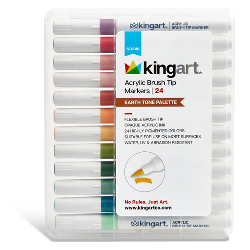 View full detailsKINGART® Earth Tone Acrylic Brush Tip Markers | Set of 24 Twenty-four (24) Unique Earth Tone Colors The colors are rich and full. ABS pen holde...
