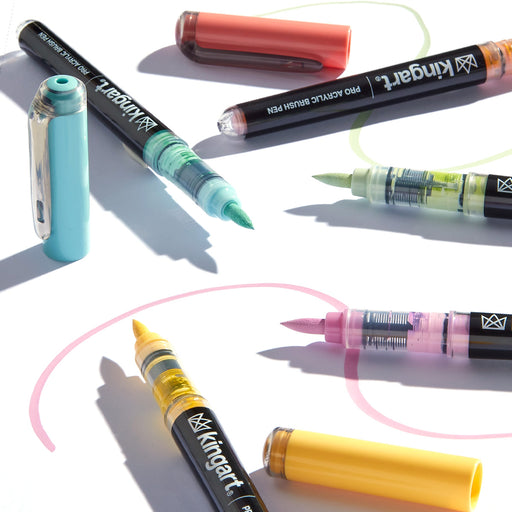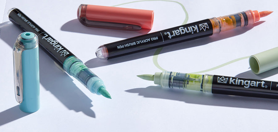 View full detailsKINGART® PRO Acrylic Brush Pens, Flexible Brush Tip with Blendable Ink Our KINGART PRO Acrylic Brush Pens give you an artist’s touch, with the abil...