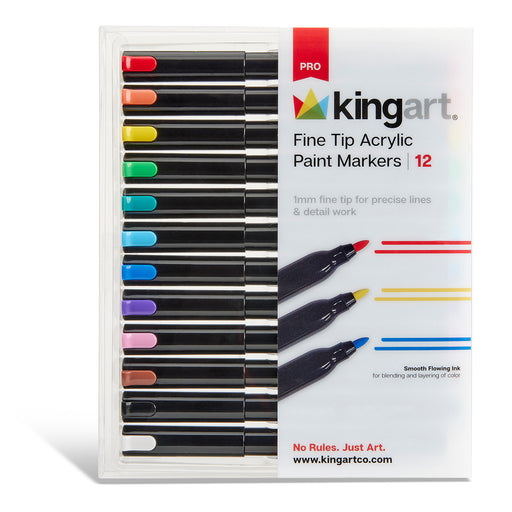 View full detailsKINGART® PRO Fine Tip Acrylic Paint Markers – 12 Vibrant Colors (1mm) Precision meets bold color. The KINGART® PRO Fine Tip Acrylic Paint Markers...