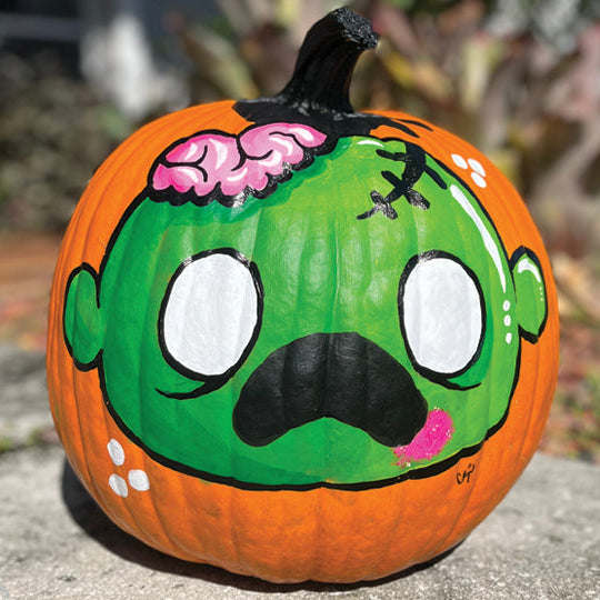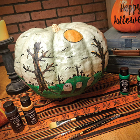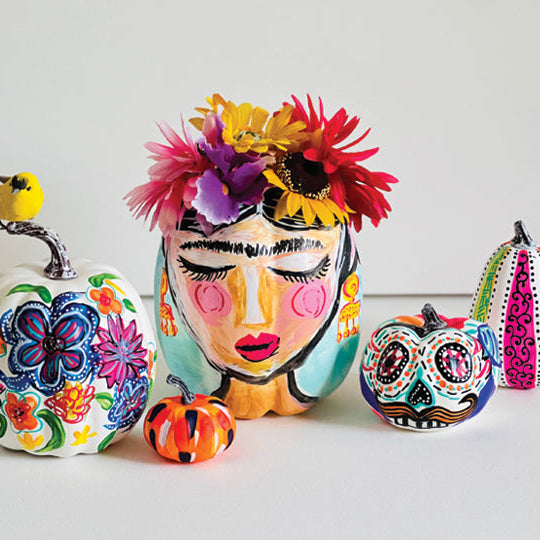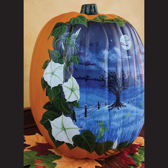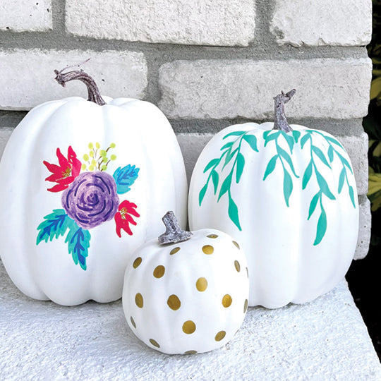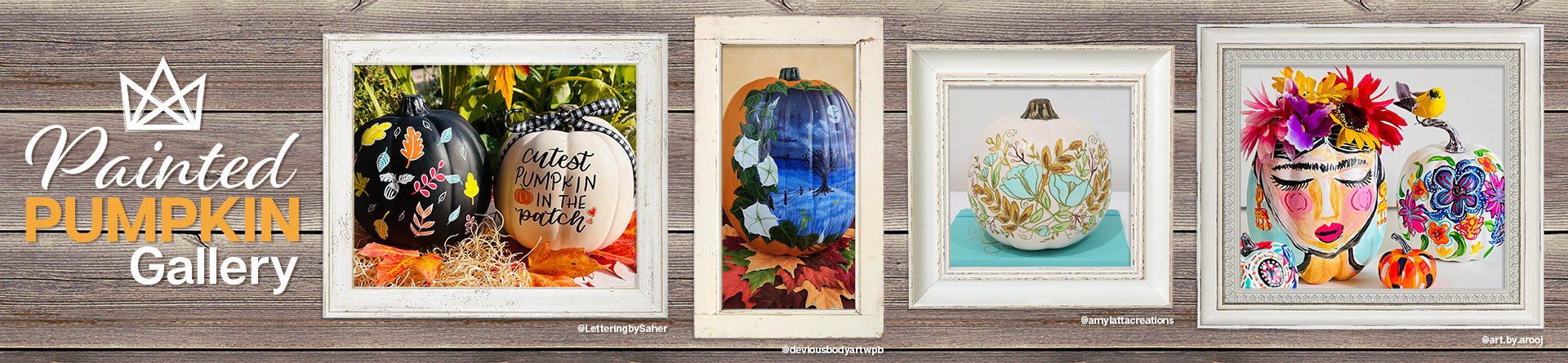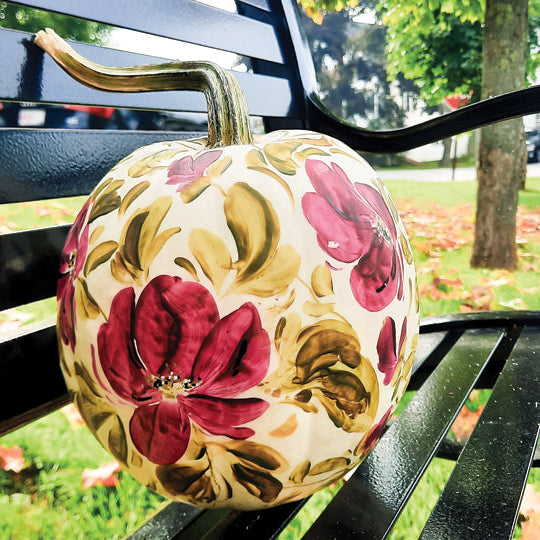 Find inspiration in Amanda's oversized florals which covered this real pumpkin! "I used the outdoor acrylic paints as well as the gold and black acrylic paint pens. Brushes King Art Original Gold 3/4" wash, #2 liner, and premium finesse shader."