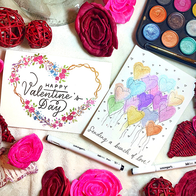 Valentine's Day is a great time to let others know how you feel and a handmade card is a beautiful way to do it. This winter we invited and challenged some KINGART influencers to create Valentine's Cards using an assortment of KINGART watercolor materials. Scroll through these creations and visit the artists' pages to learn more about their watercolor style.