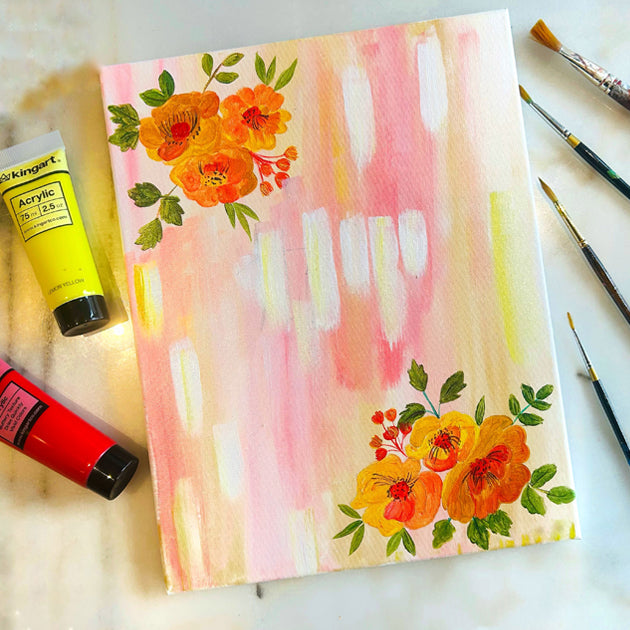 Hand painted acrylic floral art - A beautiful hand-painted floral masterpiece capturing the joy of spring, accompanied by an inspiring quote to uplift creative souls.