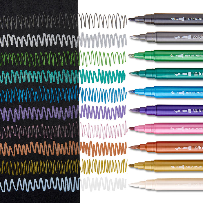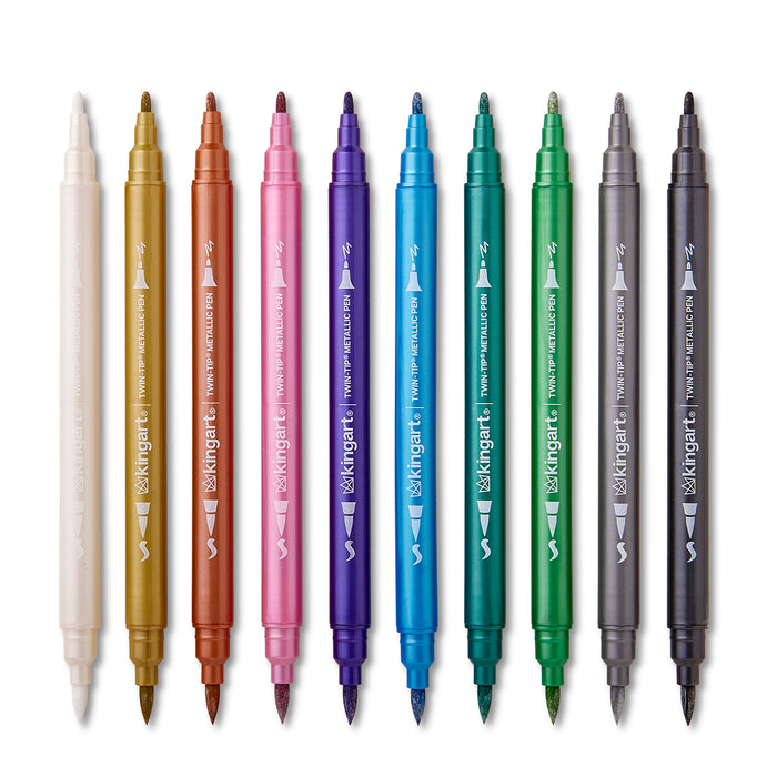KINGART® Studio Twin-Tip™ Metallic Pens, Set of 10 Unique Vivid Colors