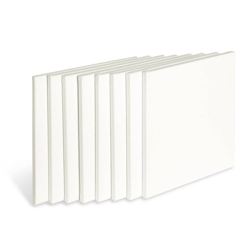 KINGART® Stretched White Canvas 12" x 12", 100% Cotton, Back Stapled, Gesso-Primed, 8-Pack 100% Cotton, medium grain Primed with 3 coats of acryli...