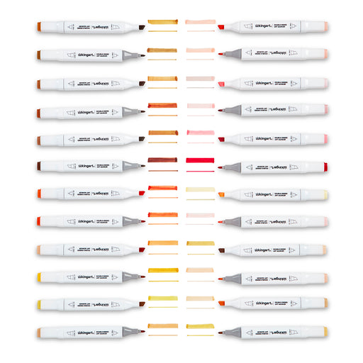 KINGART® PRO Double-Ended Sketch Markers, Portrait Color Palette, Chisel & Fine Tip, Alcohol-Based Ink, Clear Travel/Storage Case, Set of 24 P...