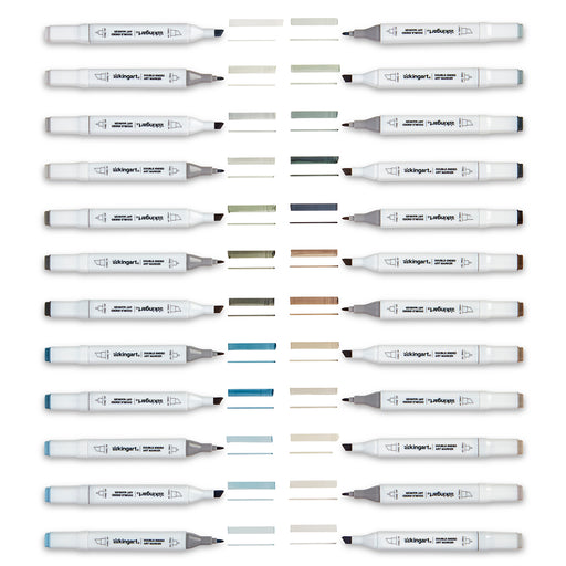 KINGART® PRO Double-Ended Art Alcohol Markers, 12 Landscape Palette Colors with Both Fine & Chisel Tips and Superior Blendability Landscape Pa...