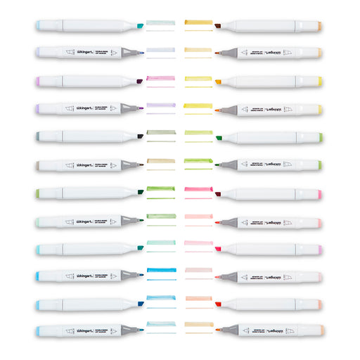 KINGART® PRO Double-Ended Sketch Markers, Pastel Color Palette, Chisel & Fine Tip, Alcohol-Based Ink, Clear Travel/Storage Case, Set of 24 Pas...