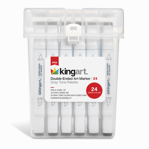 KINGART® PRO Double-Ended Art Alcohol Markers, 24 Gray Tone Palette Colors with Fine & Chisel Tips 24 Unique Grey tone Colors Alcohol-based ...