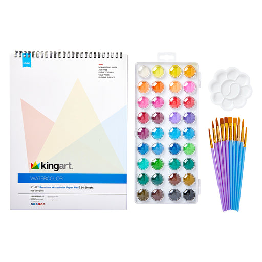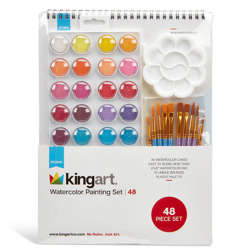 KINGART Studio Watercolor Painting Art Set 36 Watercolor Cakes: Plastic case with hinged lid keep paint clean and makes storage and transport easy...