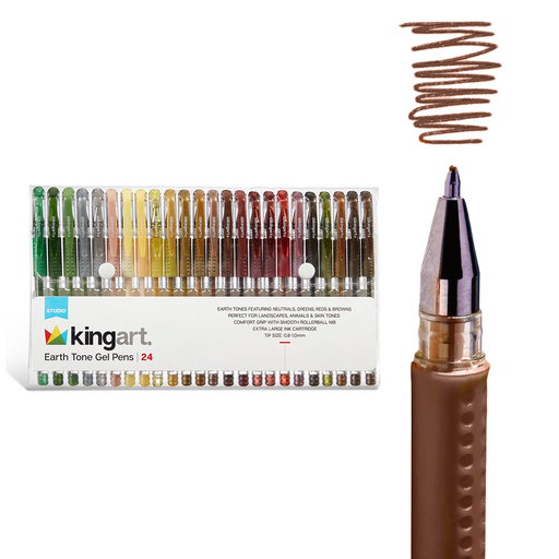 KINGART® Soft Grip Earth Tone Gel Pens, 2.0mm Ink Cartridge, Set of 24 Unique Colors 24 Unique Earth Tone Colors 2.0mm Ink Cartridge, Tip Size 1....