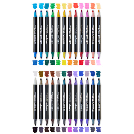KINGART® STUDIO Twin-Tip™ Brush & Fine Tip Markers, 36 Colors - Brightly Colored Markers, Double Sided for Journaling, Lettering, Kids and Adu...