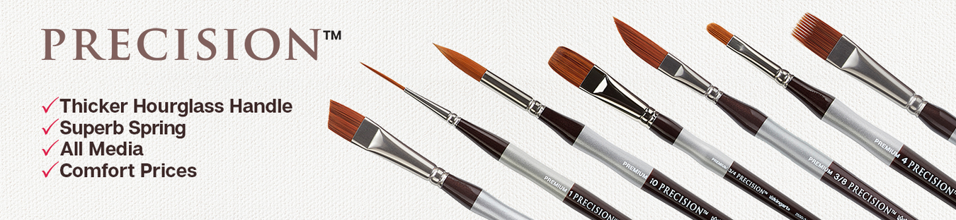 KINGART® Precision™ Series Amber Taklon Brushes, Ergonomic Comfort Handle, Gift Box, Set of 12 This collection includes: Precision™ Series Angle S...
