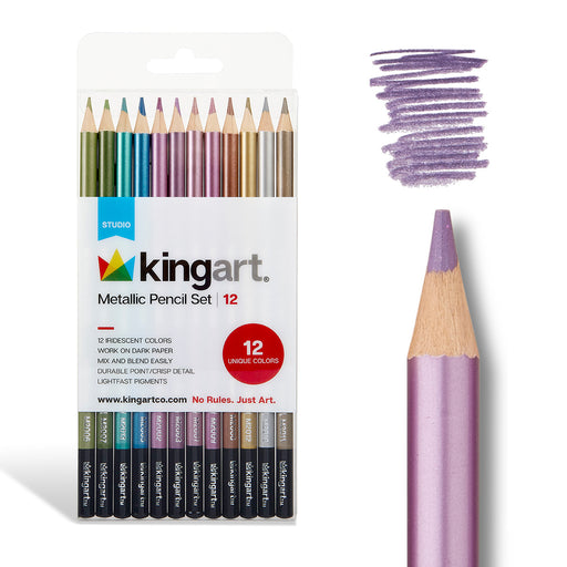 KINGART® Metallic Colored Pencils, Set of 12 Unique Colors 12 vibrant colors bring metallic luster to your drawings Create striking effects on dar...