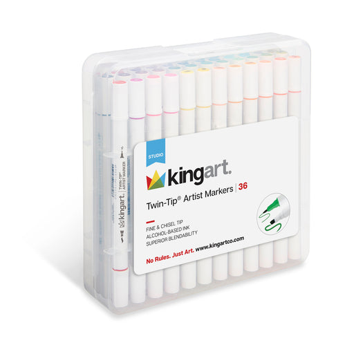 KINGART® Studio Chisel & Fine Tip Markers, Travel Storage Case, Set of 36 Colors Twin-Tip Chisel & Fine 36 Unique Colors The colors are r...