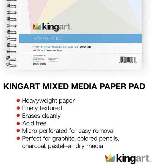 Explore various mediums with KINGART™ mixed media paper pads. Each pad contains sturdy, heavyweight paper ideal for sketches and drawing for any type of dry media; including graphite, colored pencils, charcoal, and pastel. Combine pastels and colored pencils to develop luminous scenes of color. Each sheet is also micro-perforated for easily removal from your pad and any mistakes can be erased easily.