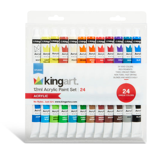 KINGART® Studio Acrylic Paint, 12ml (.4oz), Set of 24 Colors KINGART® studio level acrylic paint consists of a total of 24 vibrant colors Each ...