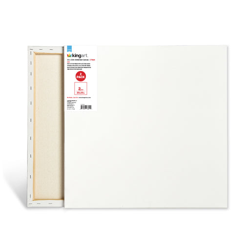 KINGART® Stretched White Canvas 20" x 20", 100% Cotton, Back Stapled, Gesso-Primed, 2-Pack Includes: 2 pcs. size 20" x 20” canvas Back stapled ...