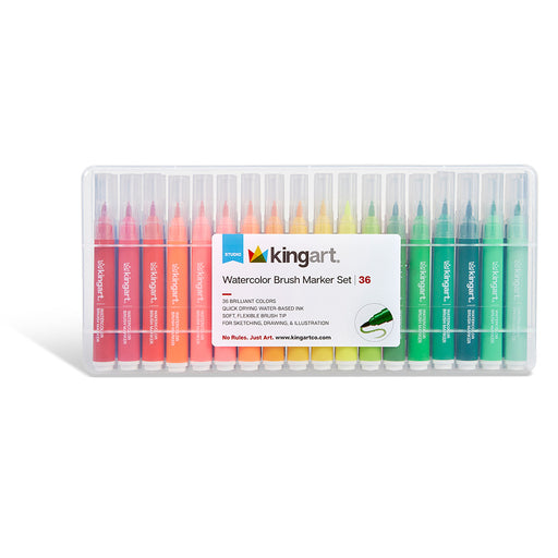 KINGART® Watercolor Brush Tip Markers | Set of 36 Thirty-Six (36) Unique Vivid Colors The colors are rich and full.  ABS pen holder is sturdy and ...
