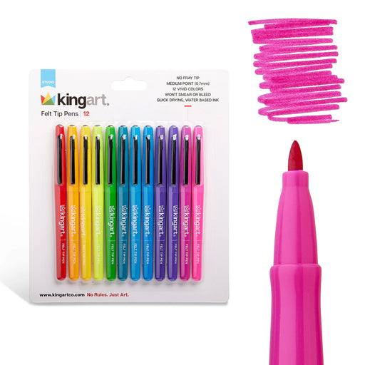 KINGART Studio Felt Tip Pens, Medium Point, Set 12 Bright Colors Color chart pre-printed on packaging - see listing below. Variety of bright colo...