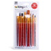 • This set includes Rounds (sizes 2, 6, 8), Flat (sizes 1/4, 1/2, 3/4), Shader (sizes 4 and 8), Angular ( sizes 5/8, 1/4), Liners ( sizes 5/0,), Fan ( size 2 ), and FIlbert (size 4)