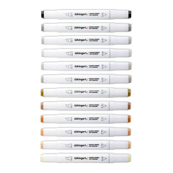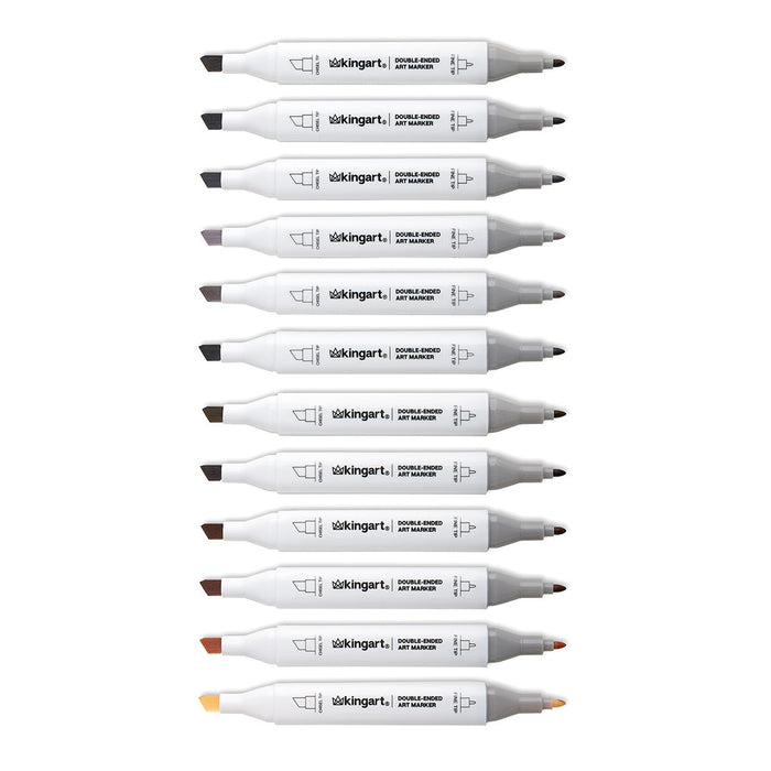 KINGART® PRO Double-Ended Art Alcohol Markers, 12 Neutral Palette Colors with Both Fine & Chisel Tips and Superior Blendability