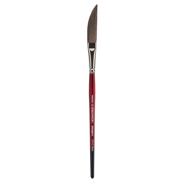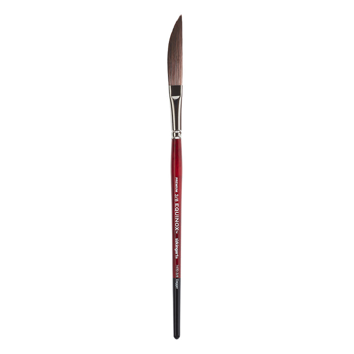 Equinox™ are superb quality brushes manufactured of a mix of triple width black synthetic fibers & synthetic Kazan Squirrel hair.   The synthetic mix filament holds a huge amount of color and releases it with perfect control for the watercolorist, silk painter, and artists working with inks, dyes, acrylics, or gouache. Consistent water release and pigment flow like silk.  Soft blend allows multiple layer glazing without disturbing previous colors, yet it's firm enough to lift color with a gentle scrub.