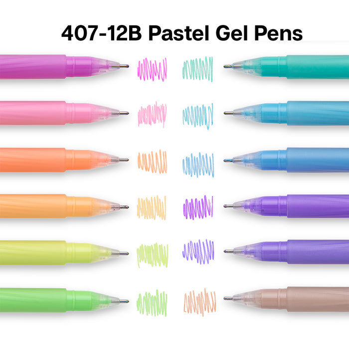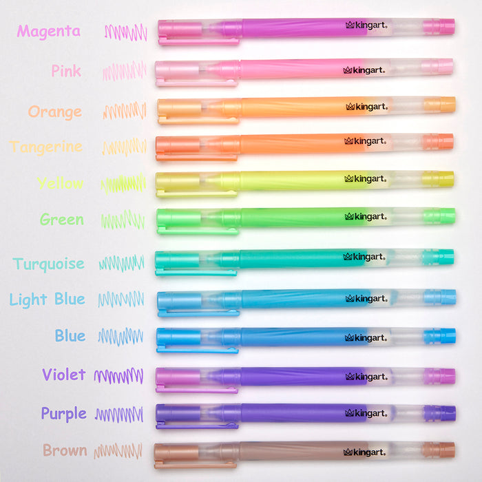 KINGART® Pastel & Opaque Gel Pens, Scrapbook, Journals, or Drawing, Colored Ink, Medium Line , Set of 12 Unique Shades