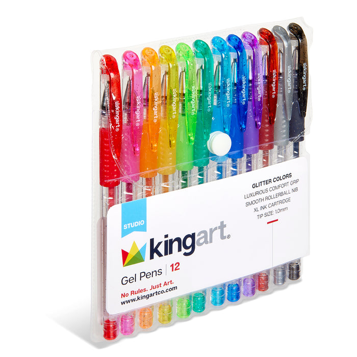 Add sparkle and smooth, vibrant color to every creative project with KINGART® Glitter Gel Pens. Featuring a comfortable ergonomic grip and a smooth rollerball nib, these pens deliver consistent ink flow and dazzling glitter effects on paper, cards, journals, and crafts.