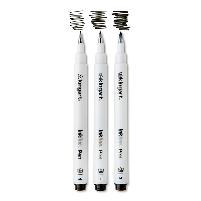 Perfect your script with the KINGART® Inkline™ Calligraphy Pen Set, designed for elegant writing, clean sketching, and expressive detail. Featuring three black pens in extra-small (XS), small (S), and medium (M) fine points, this set gives you professional-grade control for every stroke.