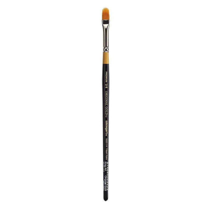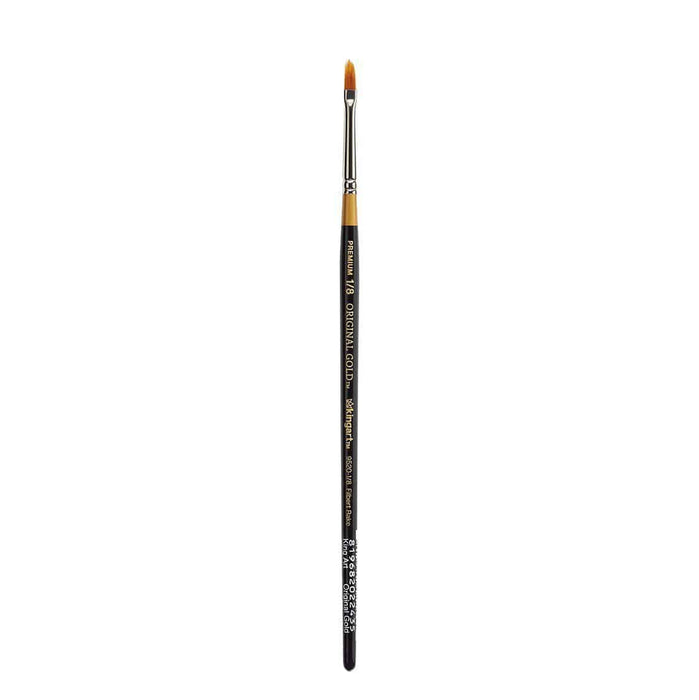 Original Gold® from KINGART®, offers a complete collection of multi-media painting brushes to help artists create the perfect masterpiece. The expert brush makers at KINGART® developed the best quality paintbrush for oil, acrylic, watercolor, and gouache painting. These brushes lend themselves beautifully to fine detailing, blocking, shading, lettering, applying washes and more. Each brush style is designed with its own special blend of luxury synthetic filaments for greater versatility, enhanced color-holding capacity, and precise color placement.