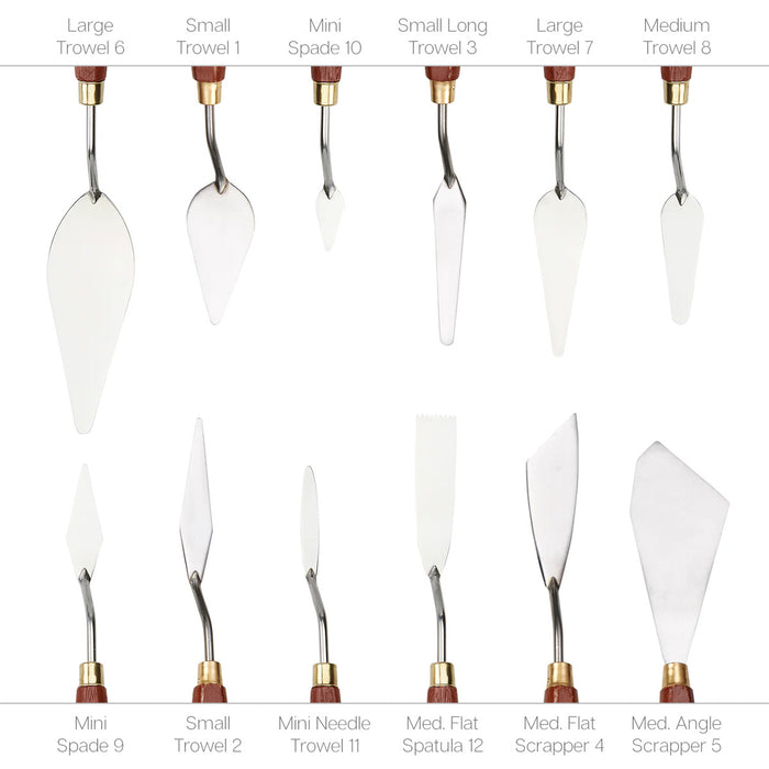 Add new KINGART® painting tools to your collection. Our painting knives are excellent for producing a range of effects from texture work to sweeping areas of flat color using oil to acrylics. Painting with a knife produces a different result than using a brush. Our knives are made with stainless steel blades with just the right elasticity that do not easily rust. They are easy and fast to clean with soap and warm water.