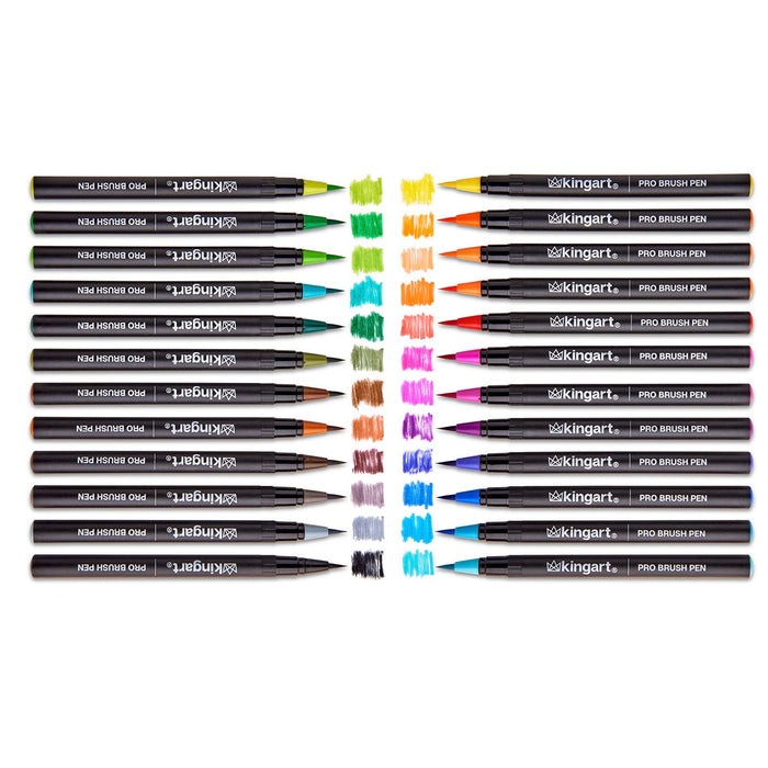 KINGART® PRO Real Brush Watercolor Marker Pens, 24 Colors, 0.5 mm Tip