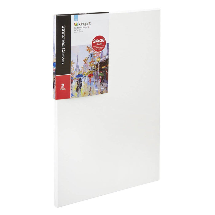 KINGART® Stretched White Canvas 24" x 36", 100% Cotton, Back Stapled, Gesso-Primed, 2-Pack