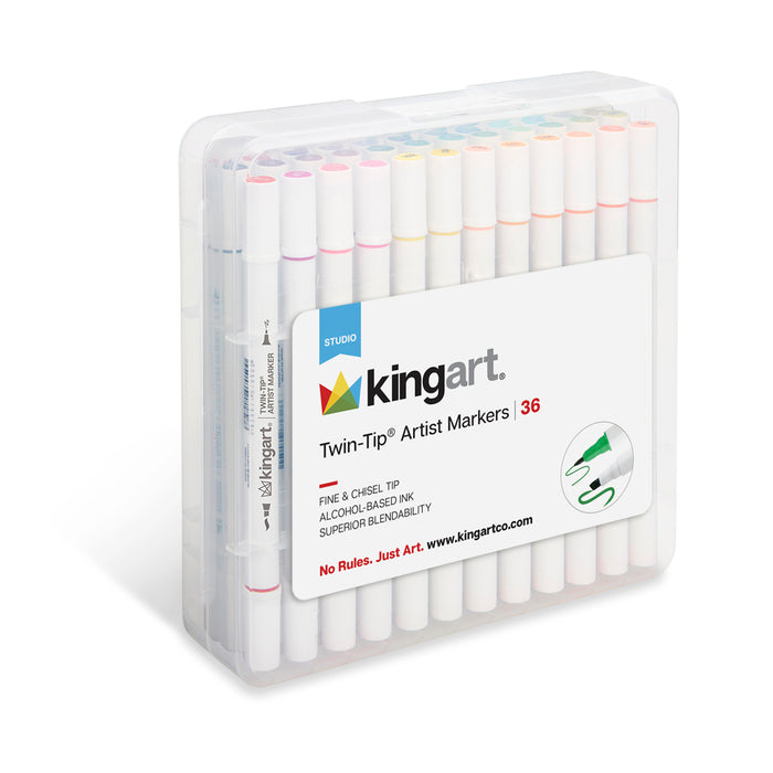 KINGART® Studio Twin-Tip™ Permanent Alcohol-Based Sketch Markers, Storage/Travel Case, Set of 36 Unique Colors, Perfect for Illustration Adult Coloring Sketching and Card Making
